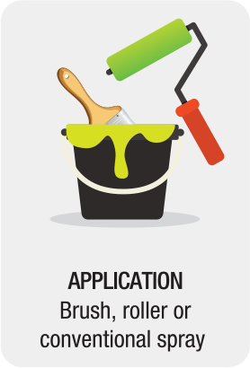 To remove surface defects and for better adhesion, use sand paper lightly between coats. Apply by brush, roller or conventional spray.